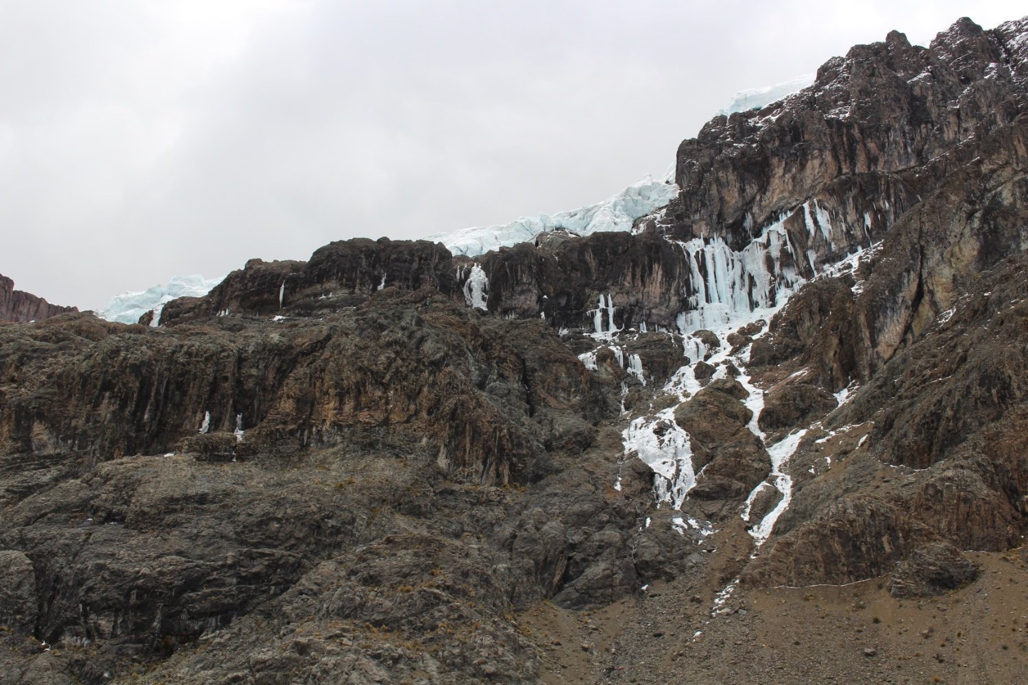 Nous y commençons une longue montée qui va nous mener au plus haut col que nous avons jamais fait : le glacier du Pastoruri à 4900 et des poussières. Il est difficile