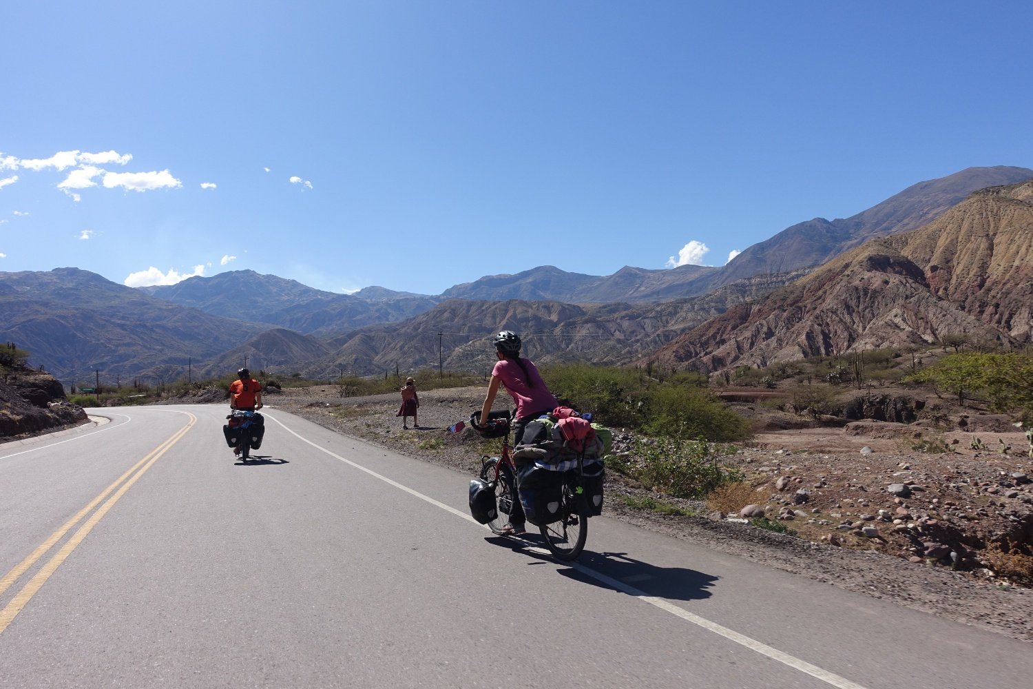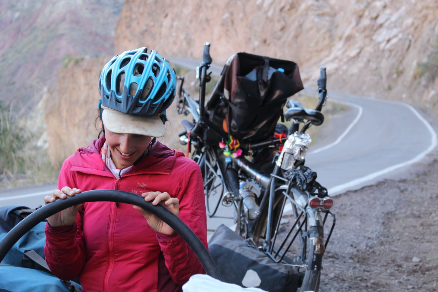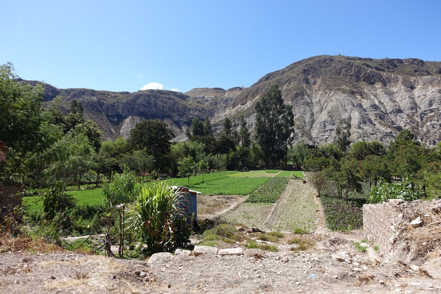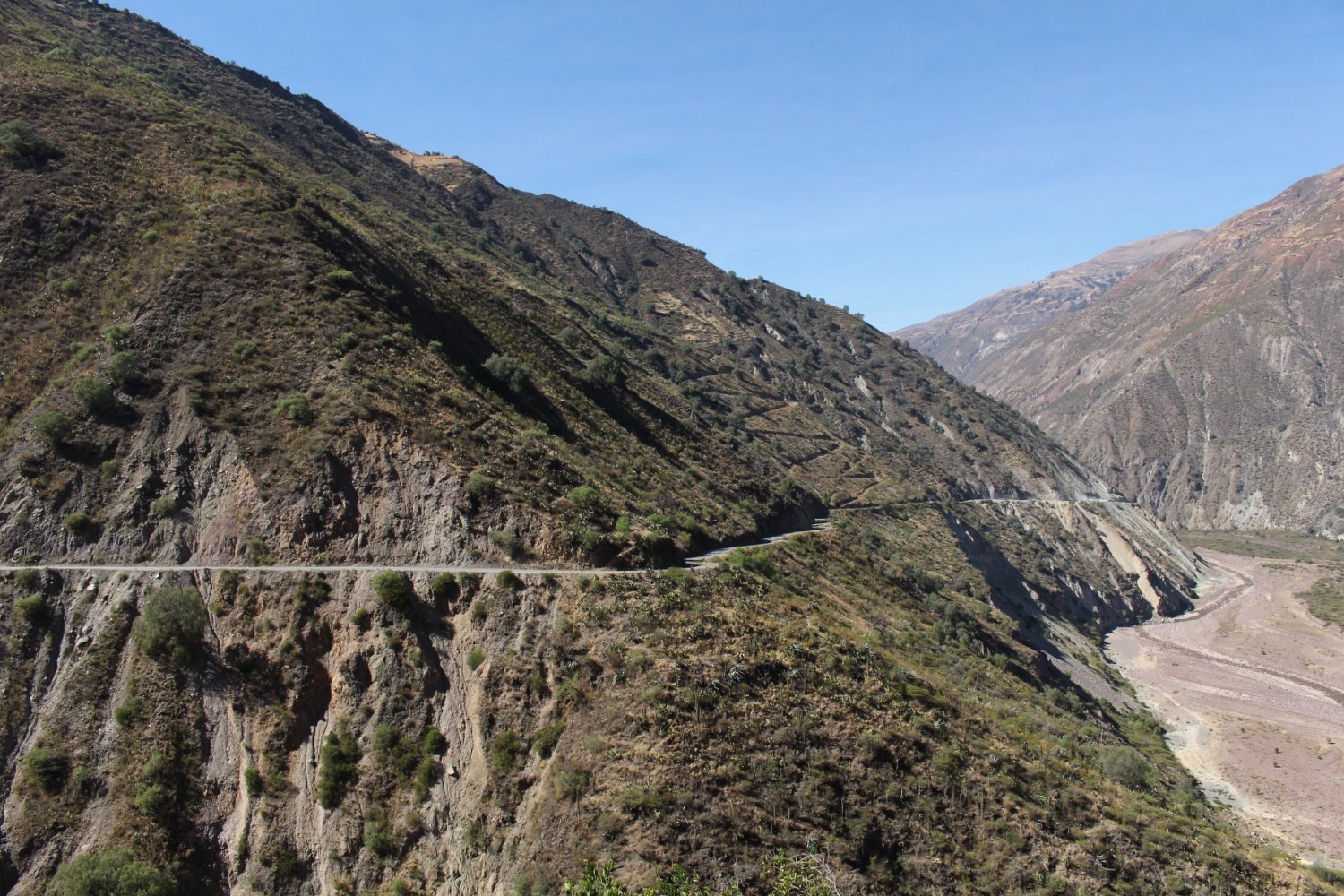 La dame qui tient cette petite « tienda » essaye de nous enseigner quelques mots de Quechua et offre une banane à Anysia avant de reprendre la route. Nous pédalons dans un canyon