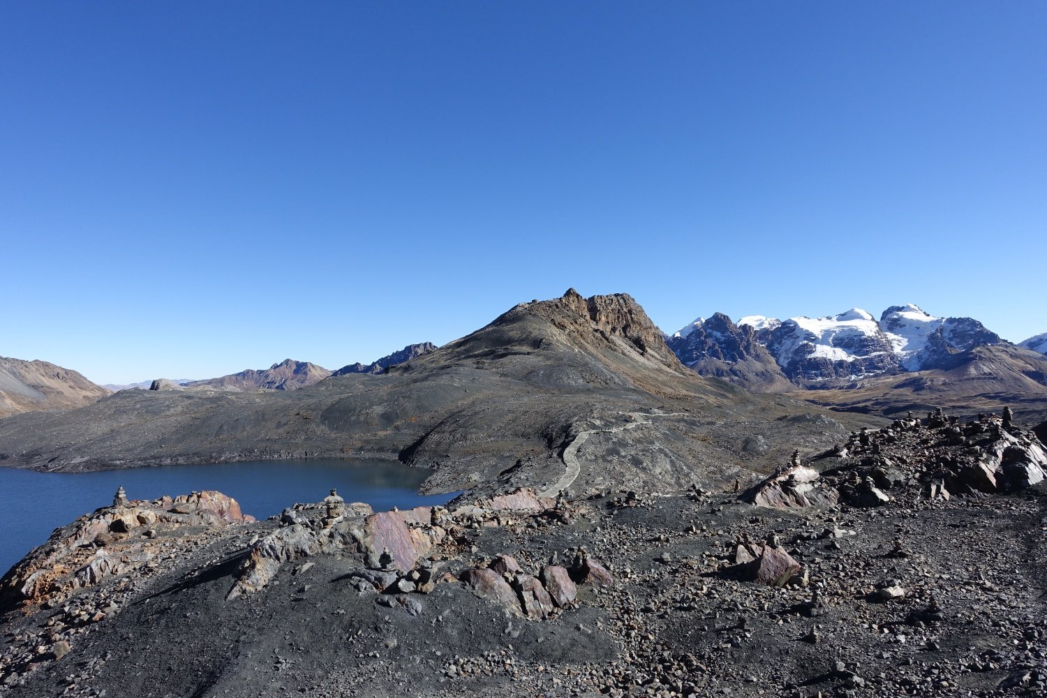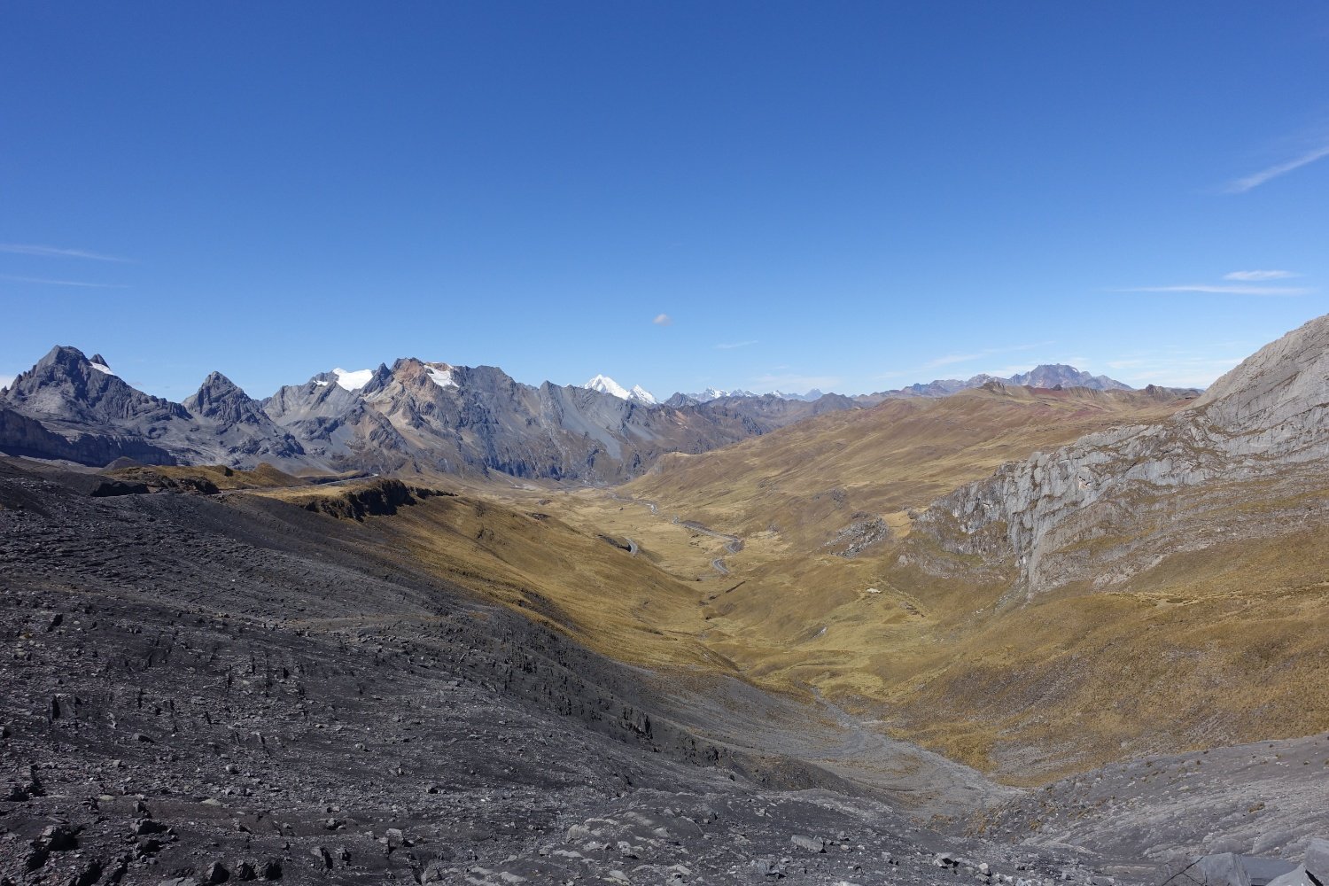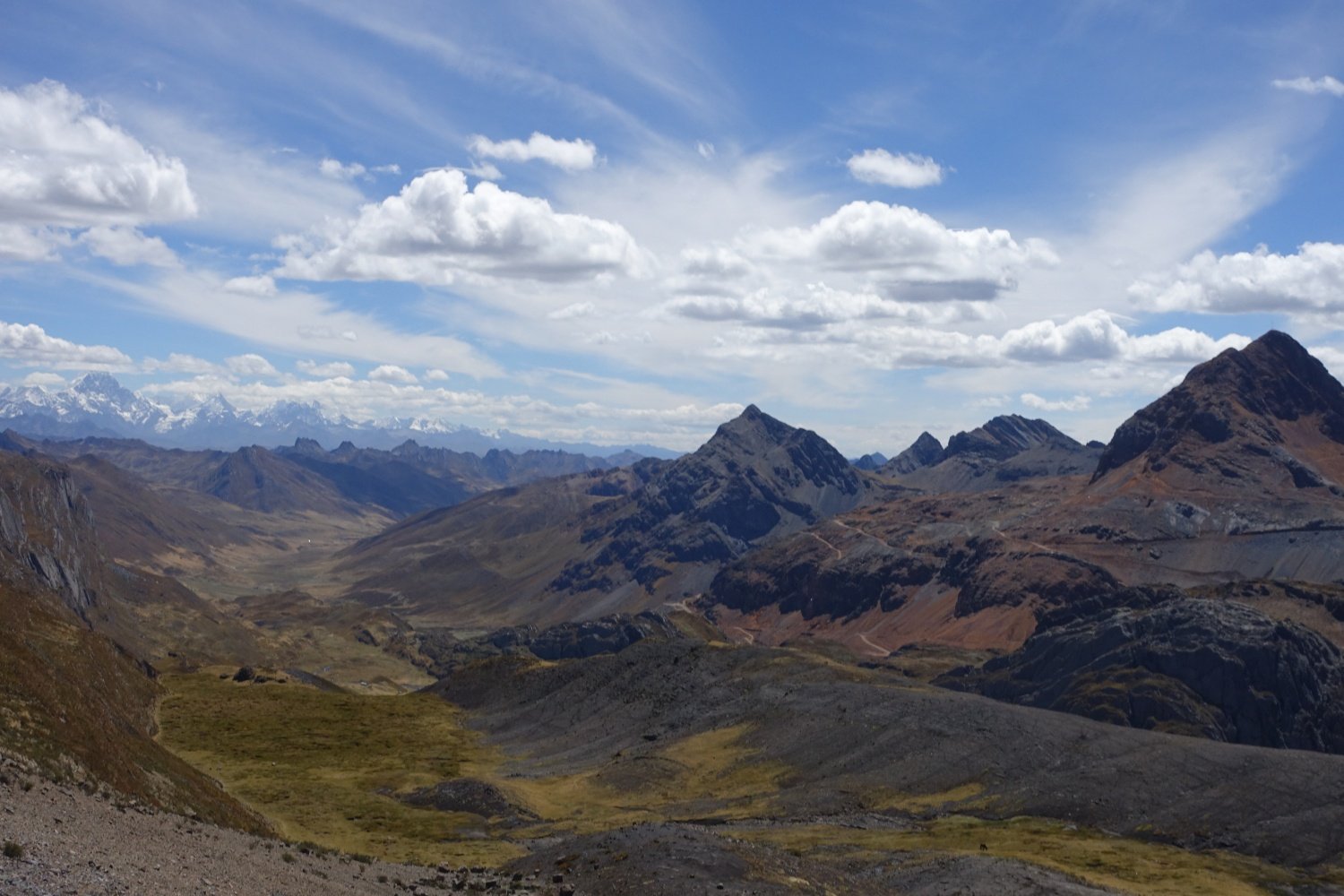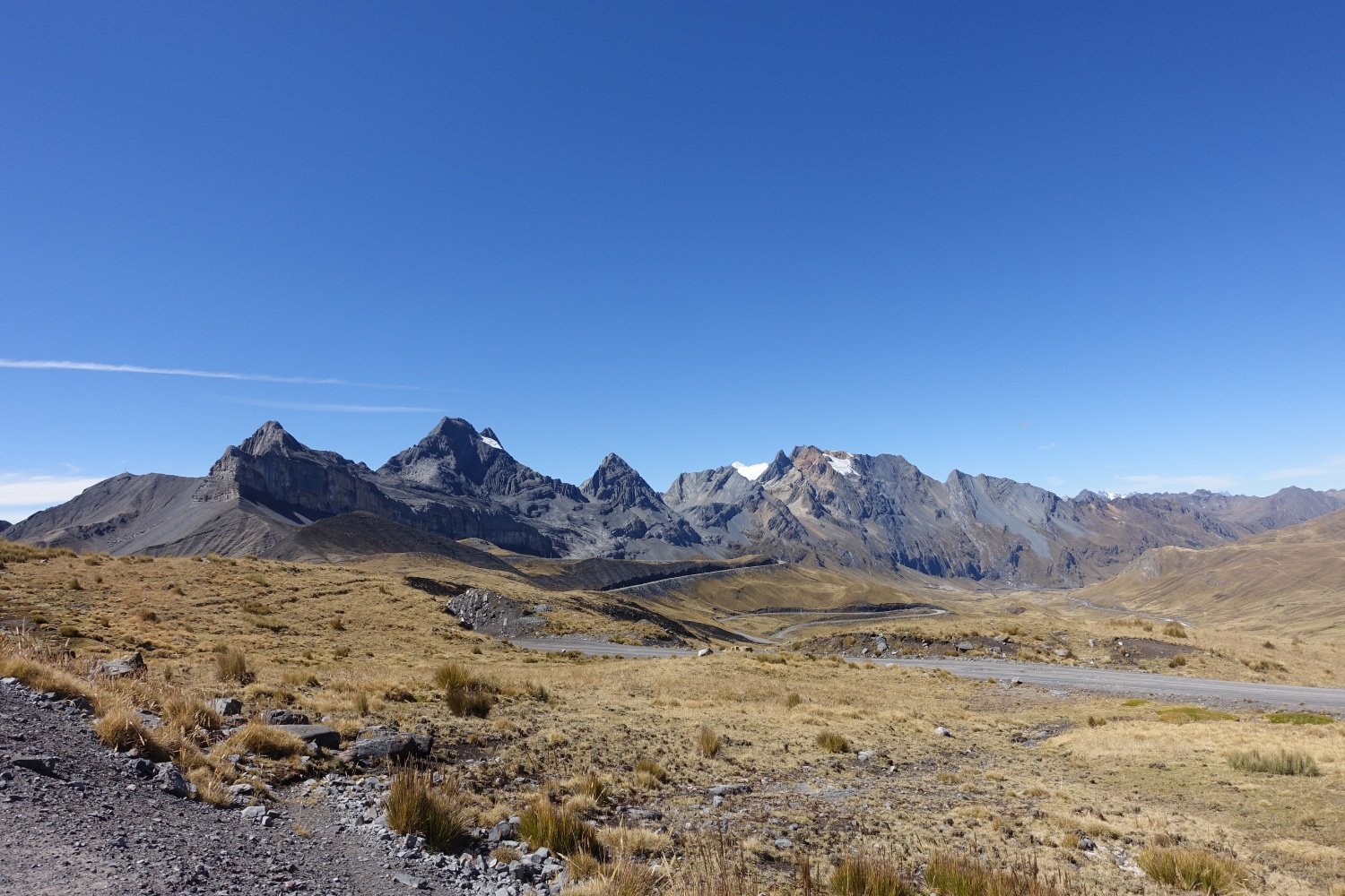 Le paysage est majestueux, nous sommes à plus de 4800 m, entourés de montagnes encore plus hautes. Nous atteignions le point le plus haut de la route et tous