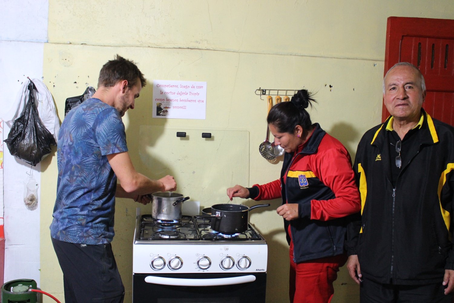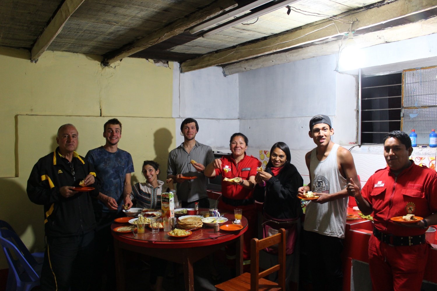 Ce soir-là, nous faisons des montagnes de crêpes à la Petzi chez les bomberos. Évidemment, nous partageons notre repas avec nos hôtes en uniforme. En discutant avec