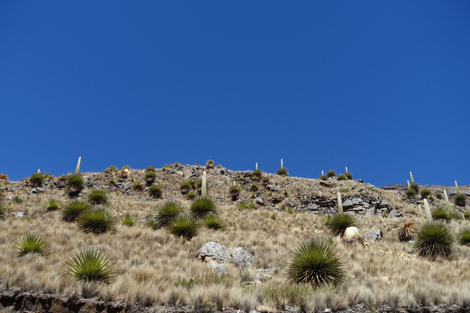 Durant la descente nous découvrons une nouvelle plante, assez spectaculaire, on dirait un palmier à l'envers. Nous croisons également la route d'américain-péruvien en voiture qui s'arrêtent pour