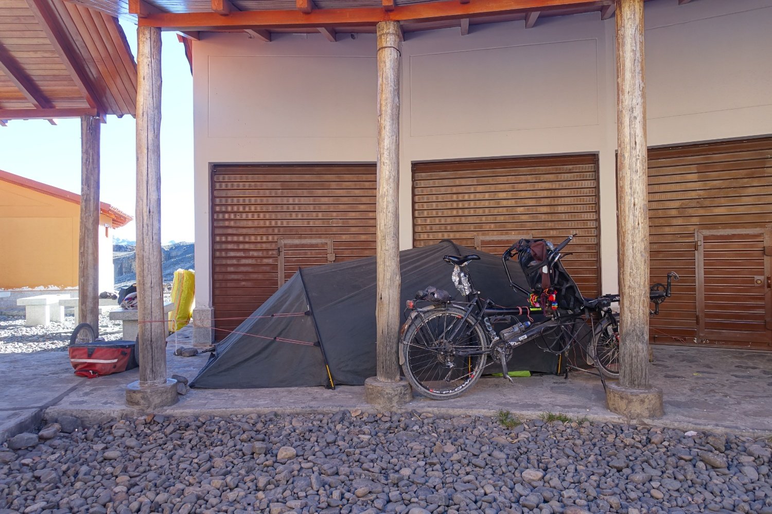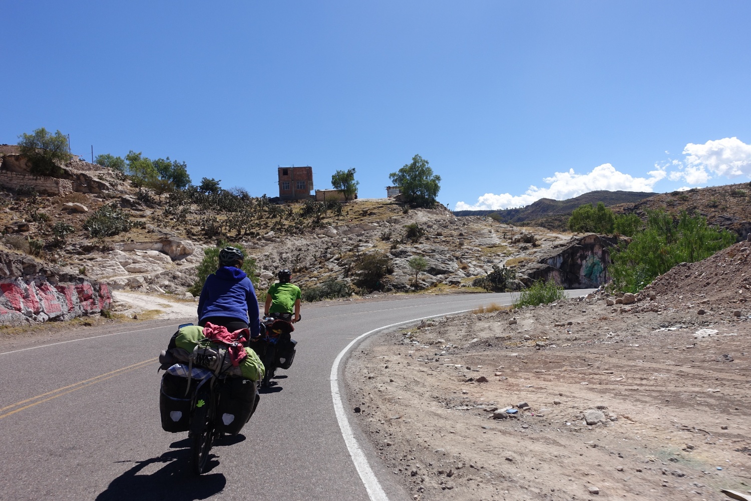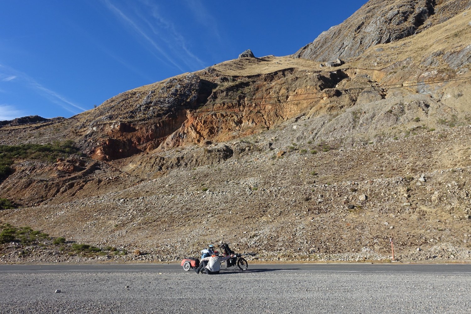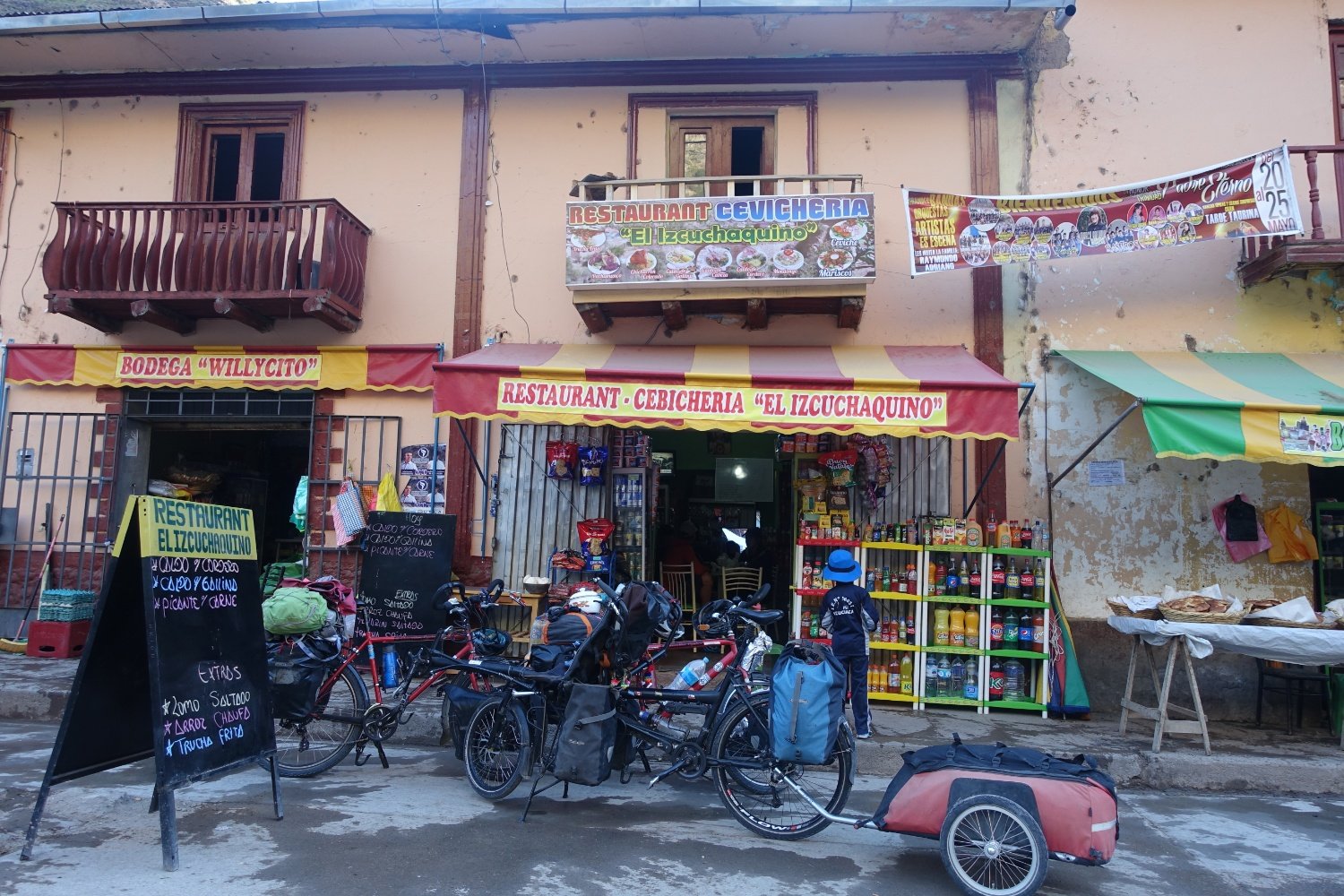 de nuit pour Huanco. Durant notre journée de repos, nous changeons le dérailleur arrière qui s'est abîmé lors d'une petite chute. On repart avec une pièce bas de gamme, mais neuve.