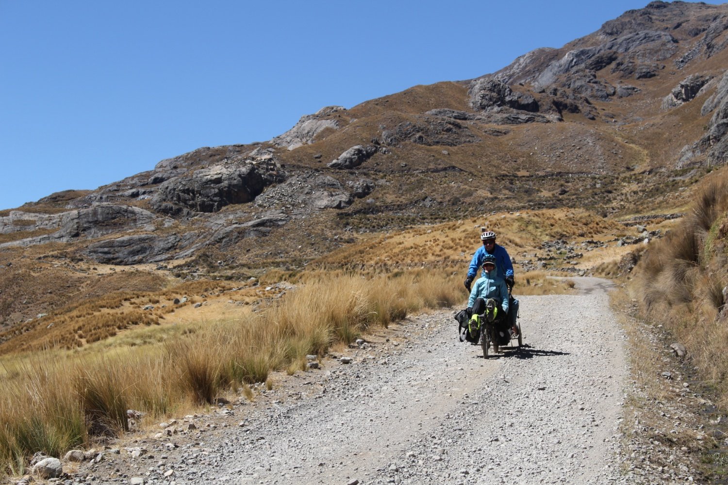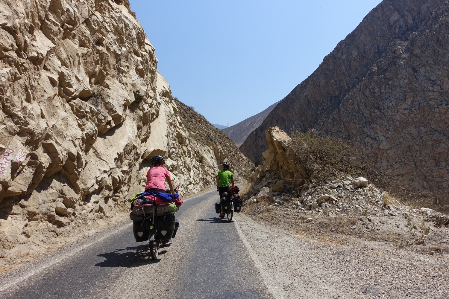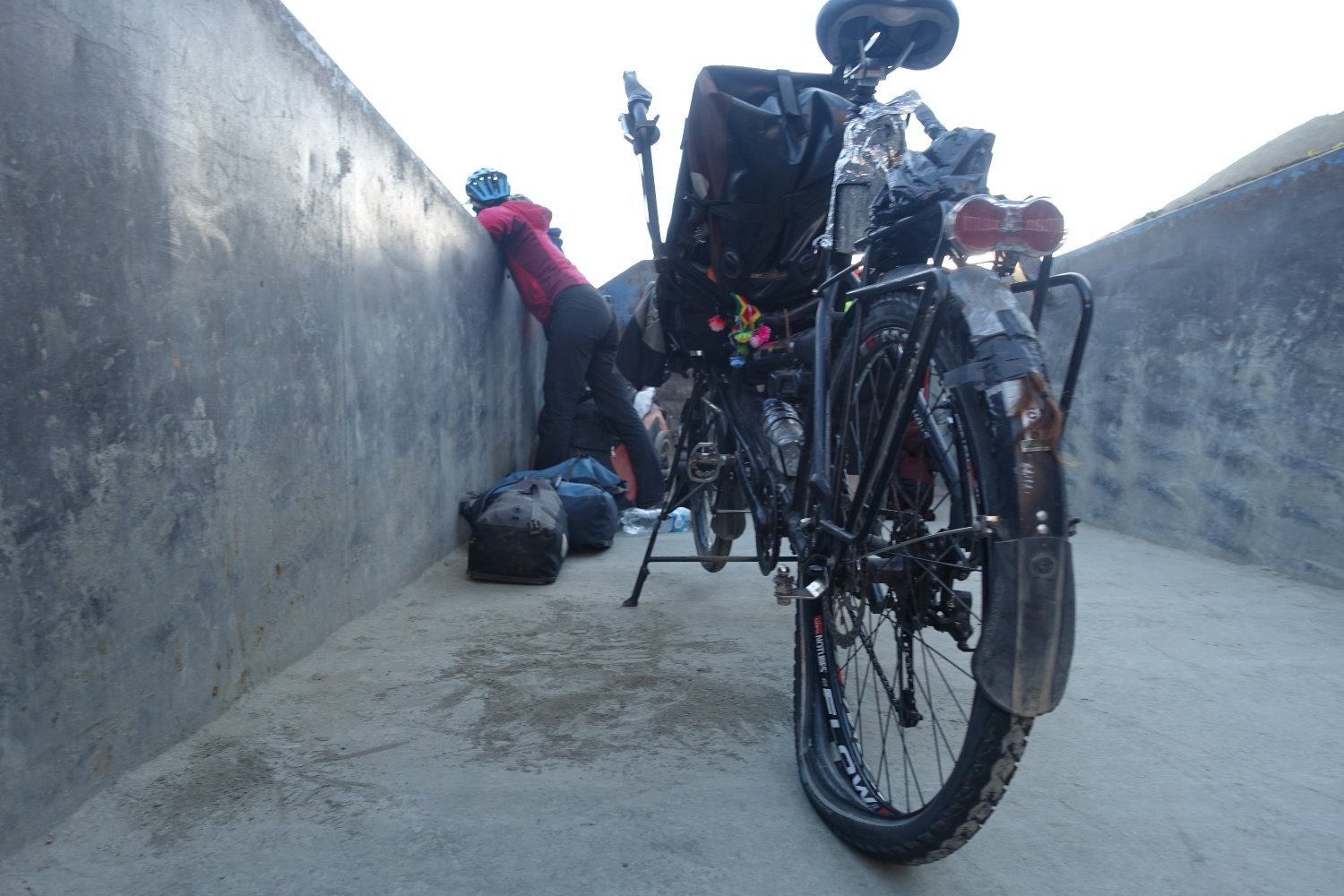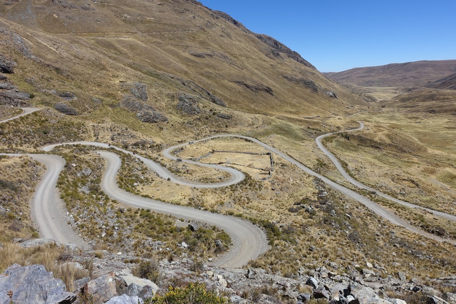 de nuit pour Huanco. Durant notre journée de repos, nous changeons le dérailleur arrière qui s'est abîmé lors d'une petite chute. On repart avec une pièce bas de gamme, mais neuve.