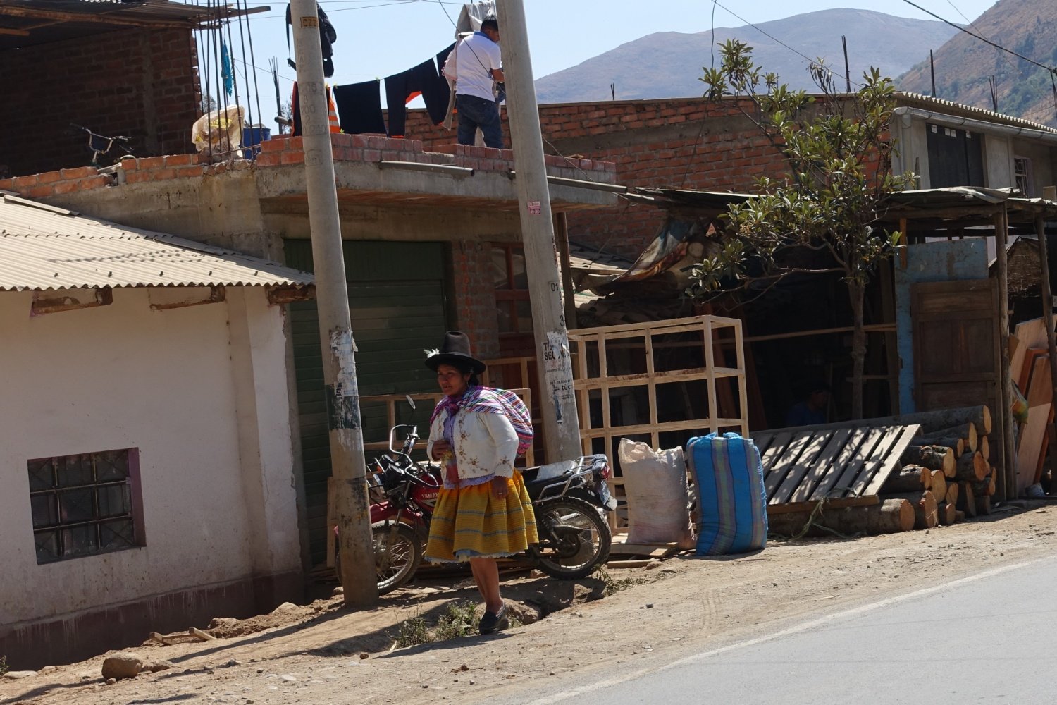 Nous repartons avec nos amis et passons dans des villages qui nous permettent d'observer la vie quotidienne, le travail des Péruviens. Le soir, le vent se lève et nous nous arrêtons plus tôt