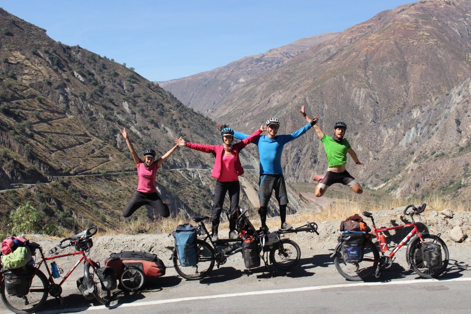 fières faisons une séance photo avant de manger notre repas de midi. La route que l'on traverse est spectaculaire avec évidemment des montées et des descentes, nous