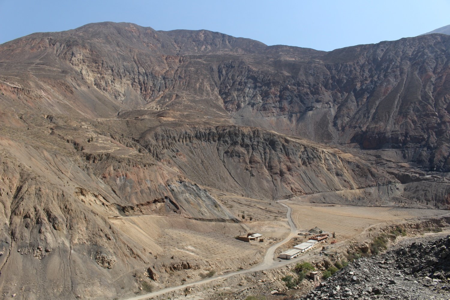 et continuons notre ascension. Le soir venu, nous passons à côté d'une mine énorme. C'est étrange de voir une telle construction au beau milieu de la nature ! On nous refuse l'accès au