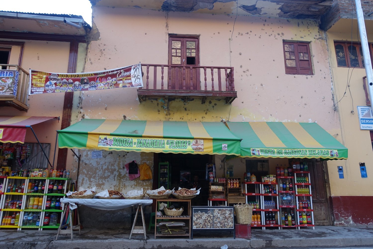 À Huaraz nous arrivons presque de nuit et dormons dans le dortoir des bomberos (pompiers). Le lendemain nous déménageons dans un hôtel avec cuisine (et surtout un four). En